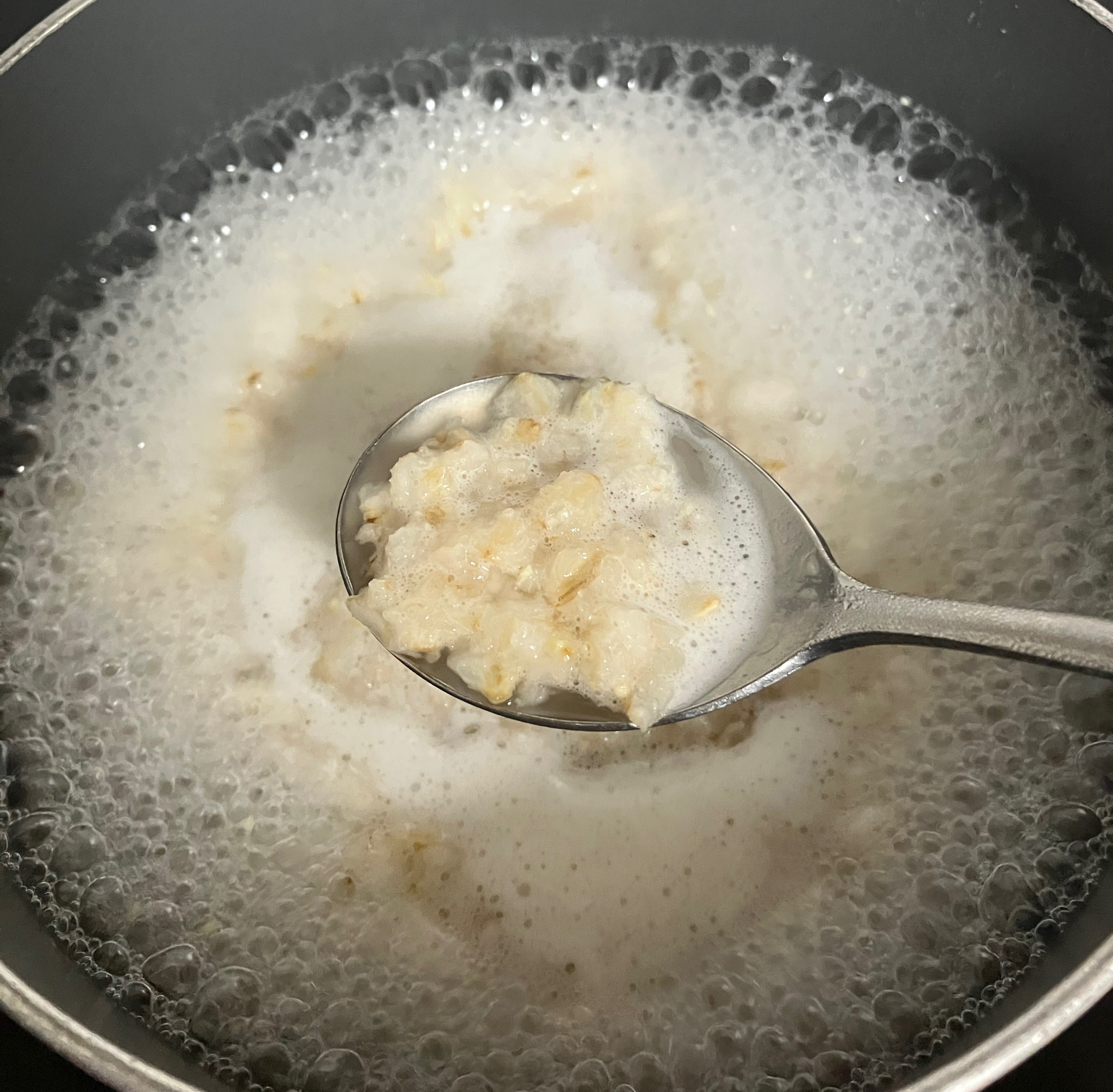 3. 오트밀이 불어날 때까지 팔팔 끓이기