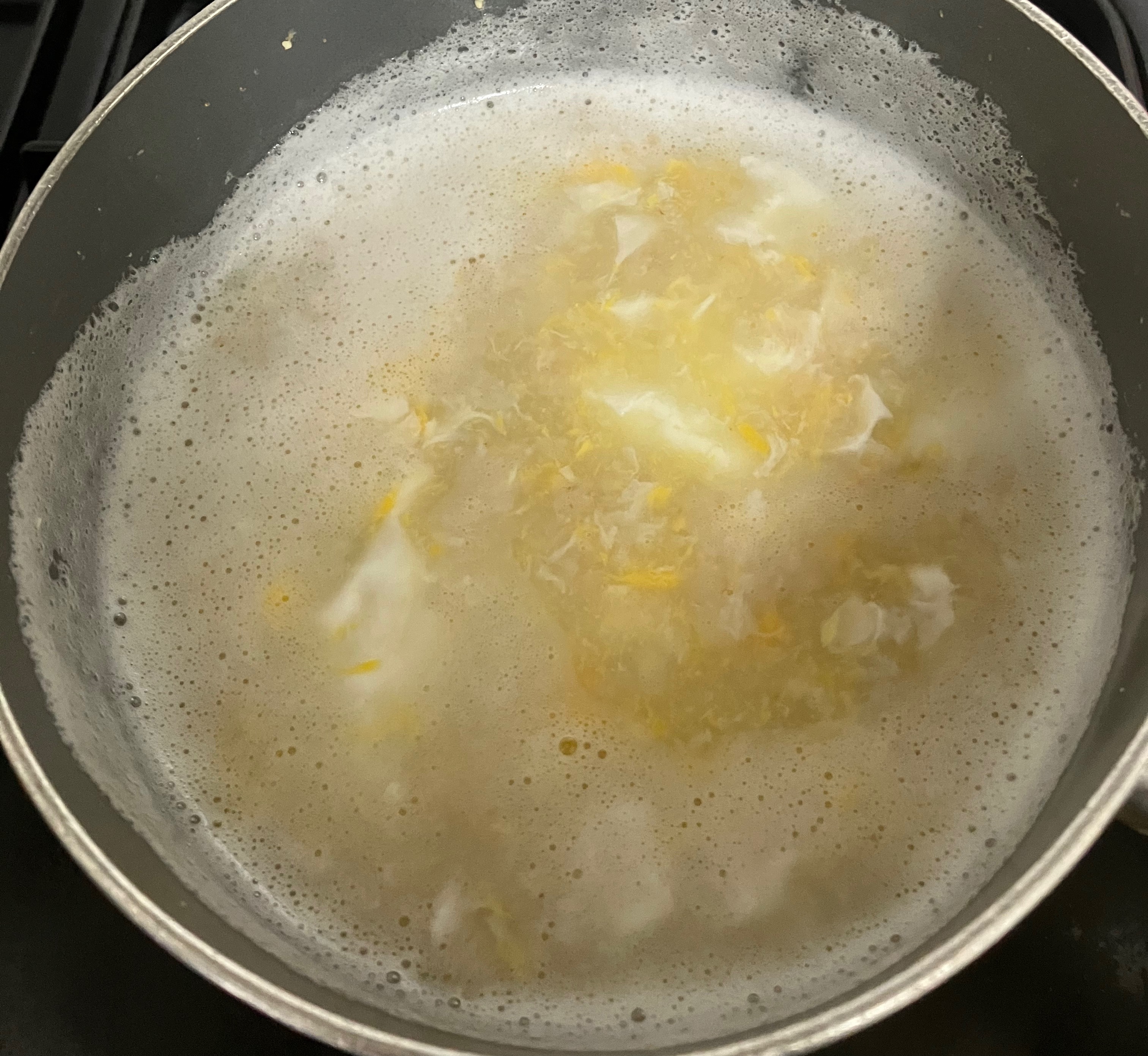 4. 적당히 끓으면 계란도 하나 톡 까 넣기